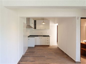 Living comedor con A/A y cocina integrada - 1 Dormitorio - 1 Baño completo - Patio tendedero - Jardin al frente con parrillero y estacionamiento para 1 auto.