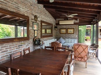 Hall de recepción - Living con estufa a leña - Comedor - Estar con estufa a leña de alto rendimiento - Escritorio - Toilette - Cocina con placares y mesadas dobles - Dormitorio y baño de servicio - 3 Dormitorios con buenos placares - 2 Baños completos (uno en suite) - Calefacción - Fondo con barbacoa con parrillero y baño - Piscina con equipos - Deposito y tender.